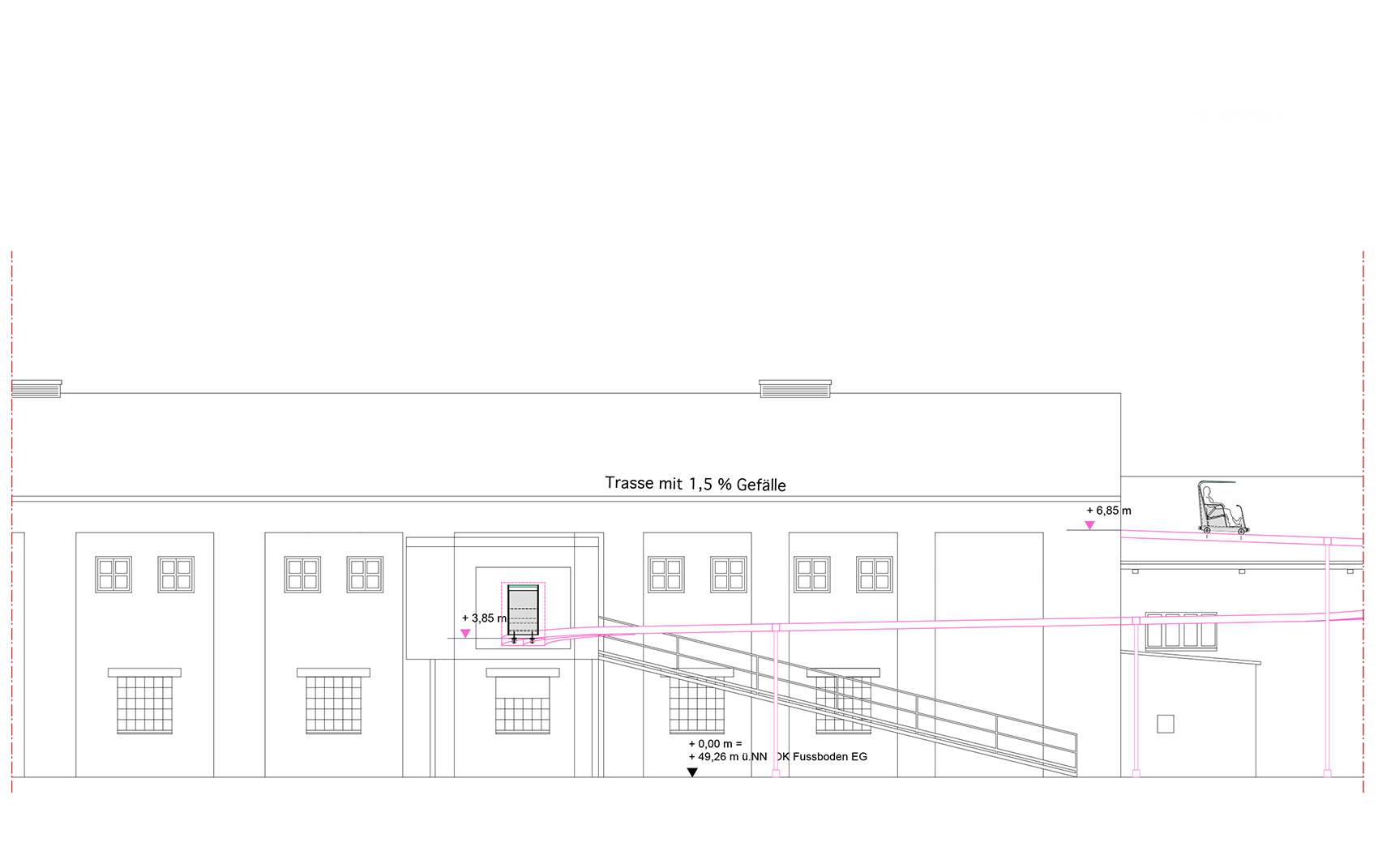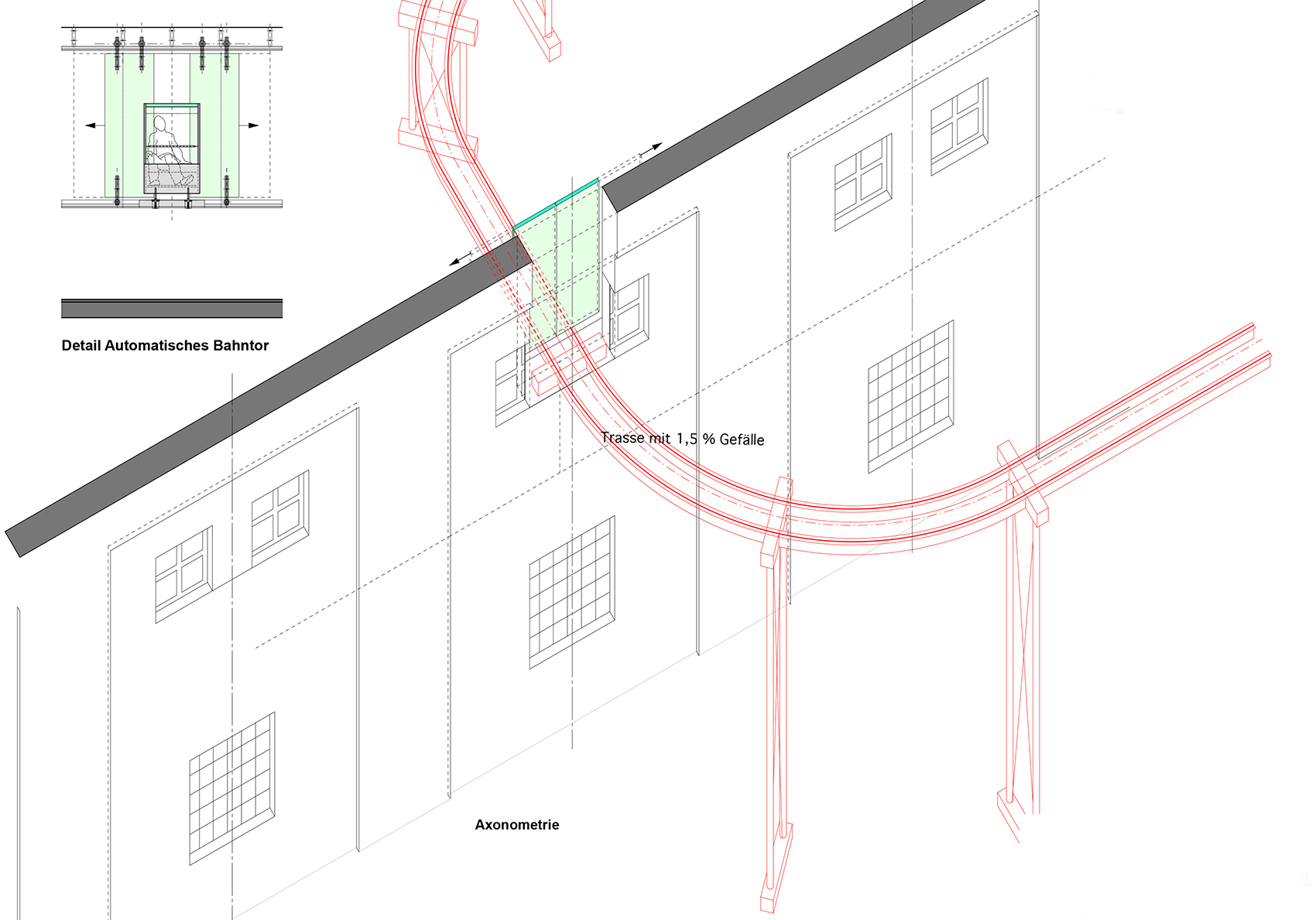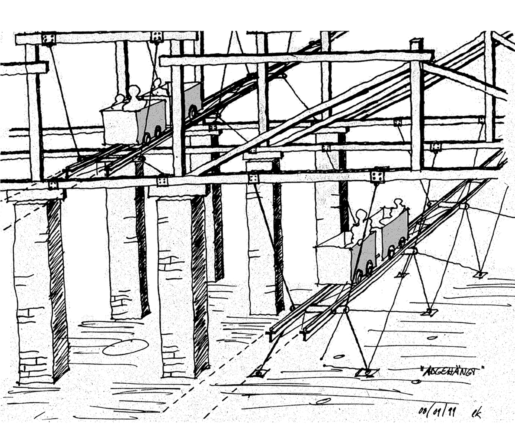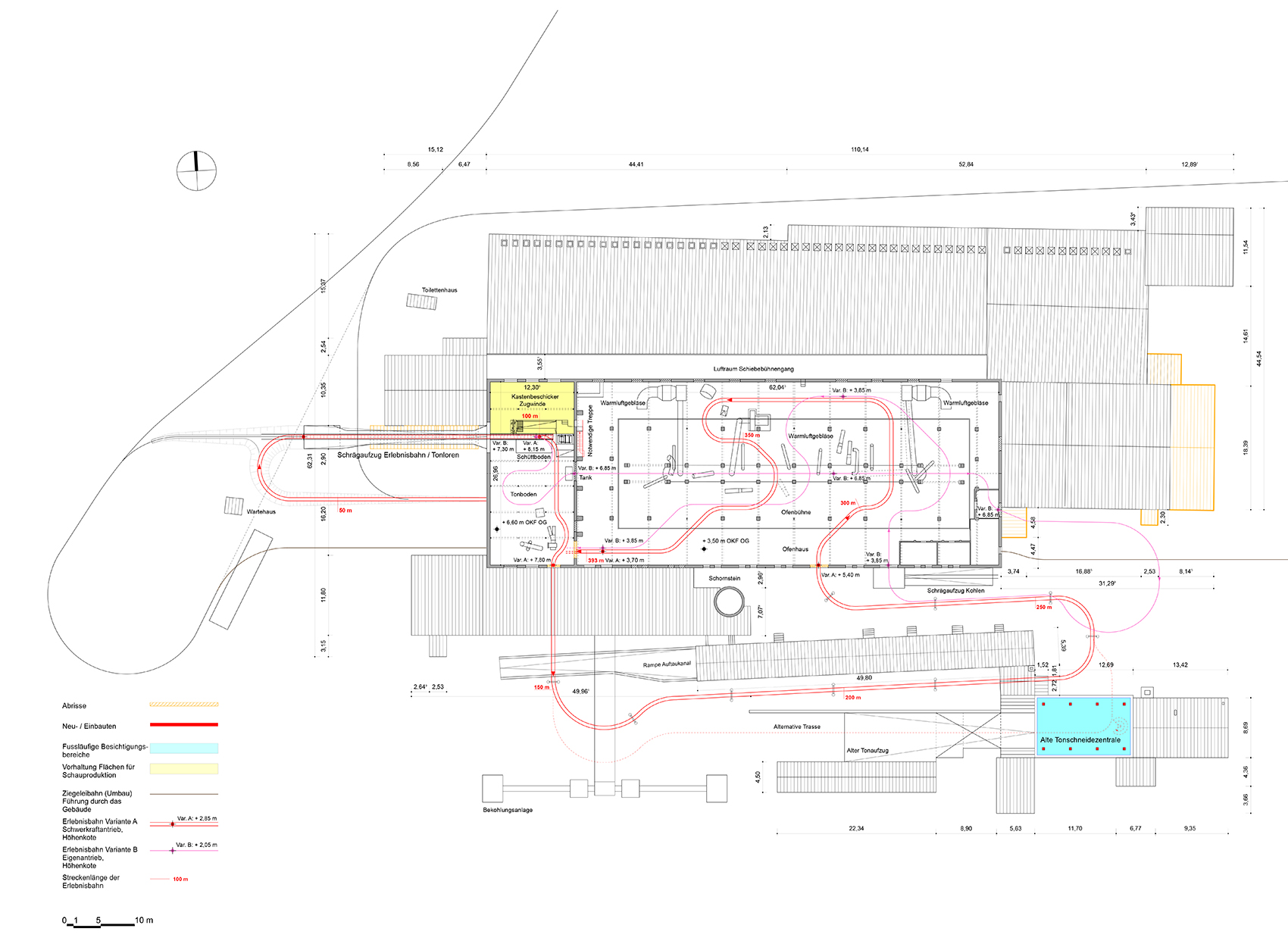 Thema des erfolgreichen Wettbewerbsentwurfes von 1999 ist, das gesamte Gebäude zur Besichtigung mit schienengeführten Wagen freizugeben. Aufwändige Verkehrssicherungsmassnahmen werden so vermieden. Das Publikum nimmt entspannt und mit hoher Erlebnisqualität am Rundgang teil. Die Wagen werden über eine Rampe zum höchsten Punkt gezogen und bewegen sich mittels Schwerkraft durch das Gebäude. Vordringlich ist dabei die Sicherung des Bestandes, vor allem durch Instandsetzung der Dächer. Die Begleitung der Sicherungsmassnahmen im Hinblick auf eine zukünftige Nutzung und die Umsetzung des Wettbewerbskonzeptes ist Aufgabe im Jahr 2001.