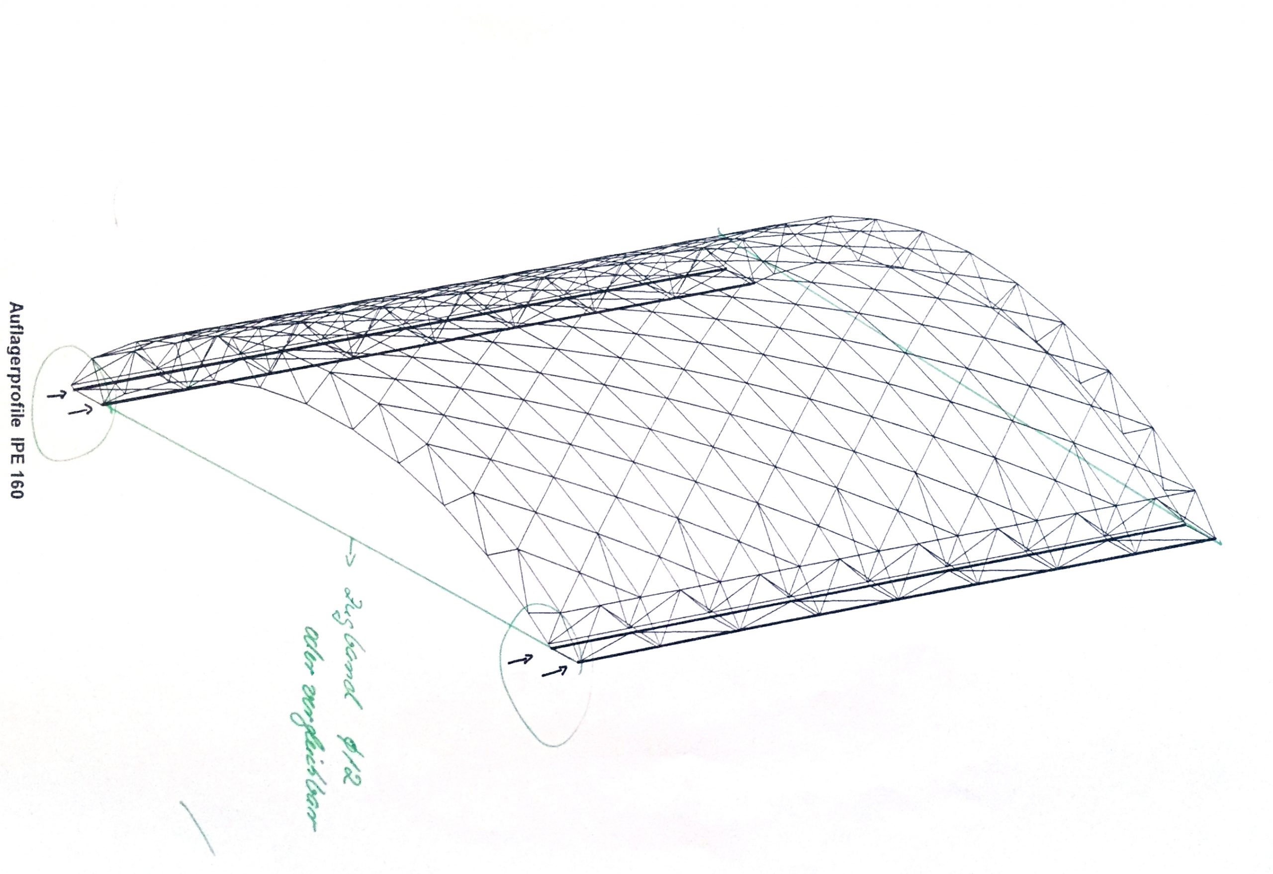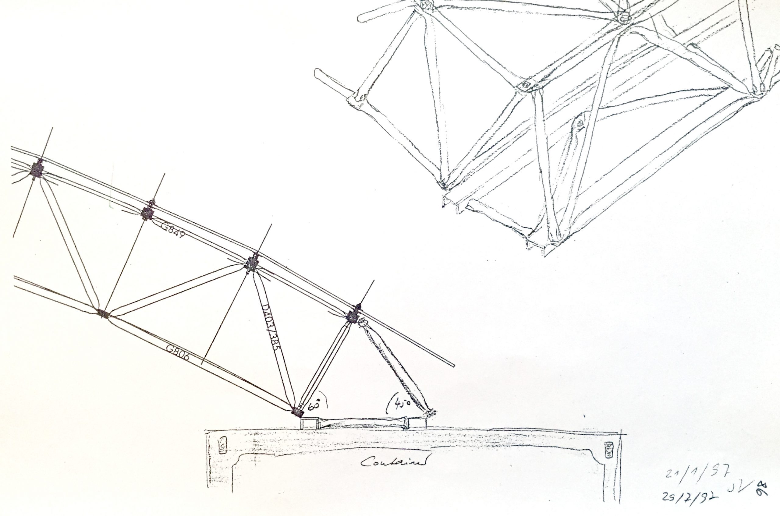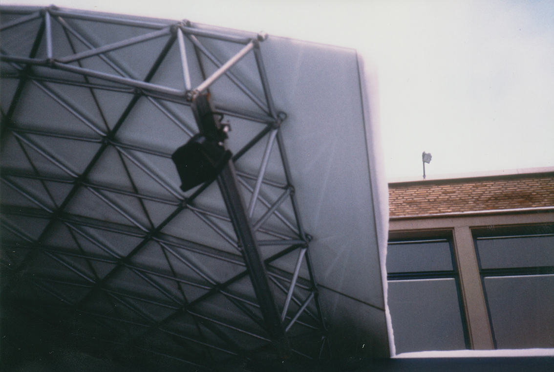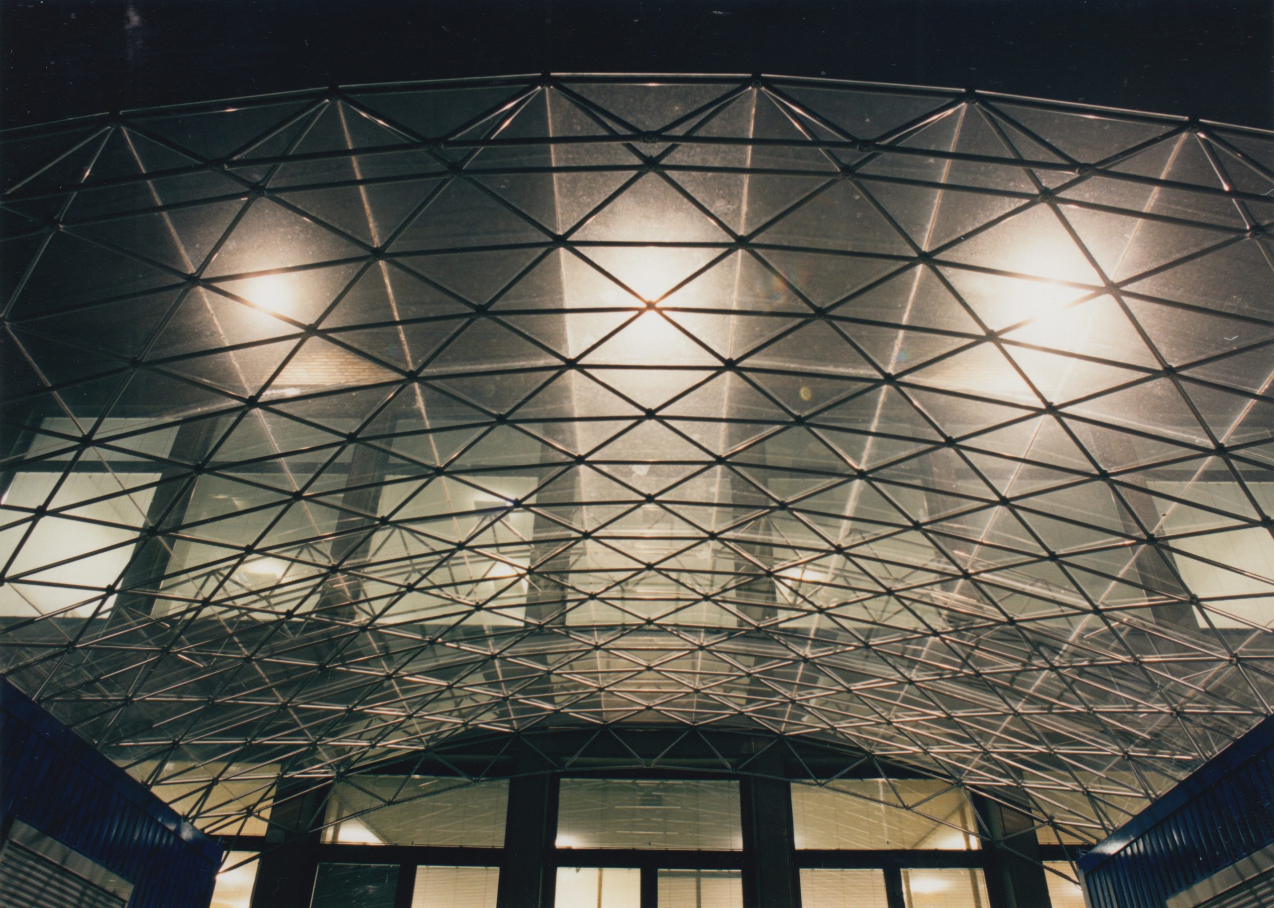 Die Container in Museum am Ostwall beherbergten Kasse und Garderobe. Ein einschaliges, tonnenförmig gebogenes Fachwerk aus System 180 wurde an den gebogenen Kanten durch flache Gitterträger zusätzlich versteift. Die linienförmgen Auflager auf den Containern wurden räumlich versteift. Auf die Konstruktion legte man von oben Sicherheitsglas, das befestigt und versiegelt wurde. Die Statik des gemeinsam mit der Firma System 180 GmbH in Berlin konstruierten Dachs wurde vom Büro Warns, Dortmund, rechnerisch nachgewiesen. Der Vorbau blieb lange stehen – die letzten drei Fotos wurde 2001 gemacht.