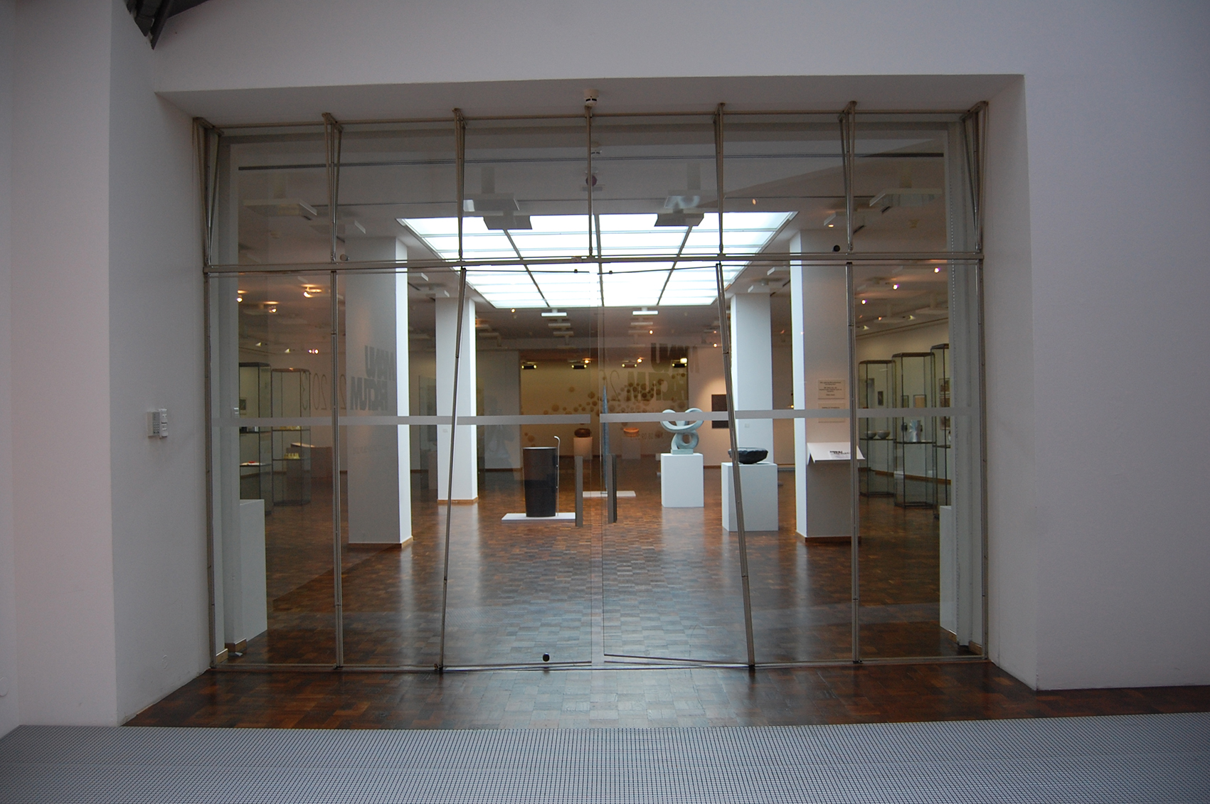 Des Weiteren wurden die Wände von allen irritierenden installationstechnischen Einrichtungen freigehalten, um dem Ausstellungsgut einen möglichst störungsfreien Entfaltungsraum zu geben. Lichtschalter sind aufgrund des eingesetzten Beleuchtungssystems nicht notwendig, Steckdosen wurden so tief wie möglich platziert, Klimaraumfühler und Bewegungsmelder wurden an den Rändern und in den Ecken platziert. Selbst die notwendige Fluchttür zum Platz von Amiens wurde in das vorgefundene Glasfenster integriert, somit wieder ein Stück Wandfläche gerettet und die sonst kaum nutzbare Südwand zu einer Museumswand gemacht. Die raumhohe Schaufensterfassade zum Königswall und zur Hansastrasse muss auch in Hängefläche umgewandelt werden können, ohne von außen den Eindruck eines verbauten Fensters entstehen zu lassen. Gleichzeitig soll unverfälschtes Tageslicht in den Raum gelangen können, um die Möglichkeiten einer aus Tages- und Kunstlicht konzipierten Beleuchtung der Exponate zu erhalten. Die neu geschaffenen Hängeflächen basieren auf dem für Vitrinen und Stellwände entwickelten System und genügen damit dem doppelten Anspruch, größtmögliche Variabilität mit einheitlicher Raumkonzeption zu vereinbaren. An einem unter der Decke angebrachten Stahlfachwerkträger können wahlweise Elemente mit Glas- oder Holzflächen angedockt werden, deren Maße mit denen der Vitrinen und Stellwände kompatibel sind. Der Einsatz von Glasflächen in der Vertikalen kann durch inszenierte Einblicke die Neugier der Passanten wecken und zusätzliches Tageslicht in den Innenraum einlassen. Von der Straßenseite her sind die Systemwände auch als Informationsträger nutzbar. Ihr Abstand zur Schaufensterfront ist groß genug, um Plakate oder ähnliches auch in diesem Zwischenraum zu beleuchten zu können.