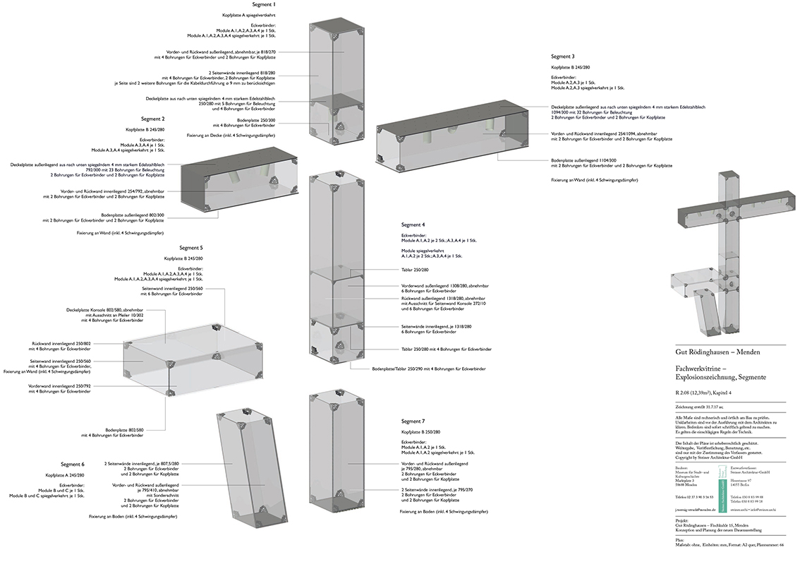 Nach erfolgreichem Wettbewerb für ein neues Industriegeschichtsmuseum auf Gut Rödinghausen, Menden, 2015, galt es nach Abschluss der Entwurfsplanung die Idee der Fachwerkvitrine mit einem Prototypen zu überprüfen.