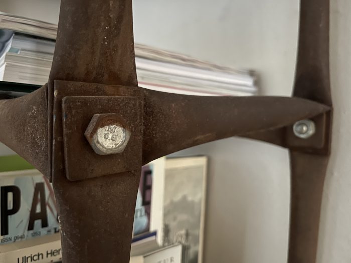 Im system180.museum befindet sich noch ein etwas kleineres Exemplar, das lagerbedingt stark verrostet ist (Bilder 1–3). Das vierte Bild zeigt die Katalogkarte der Design-Agentur Berliner Zimmer aus dem Jahr 1987.