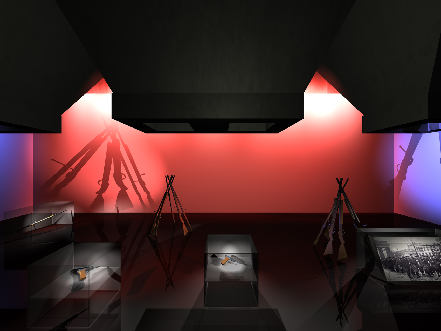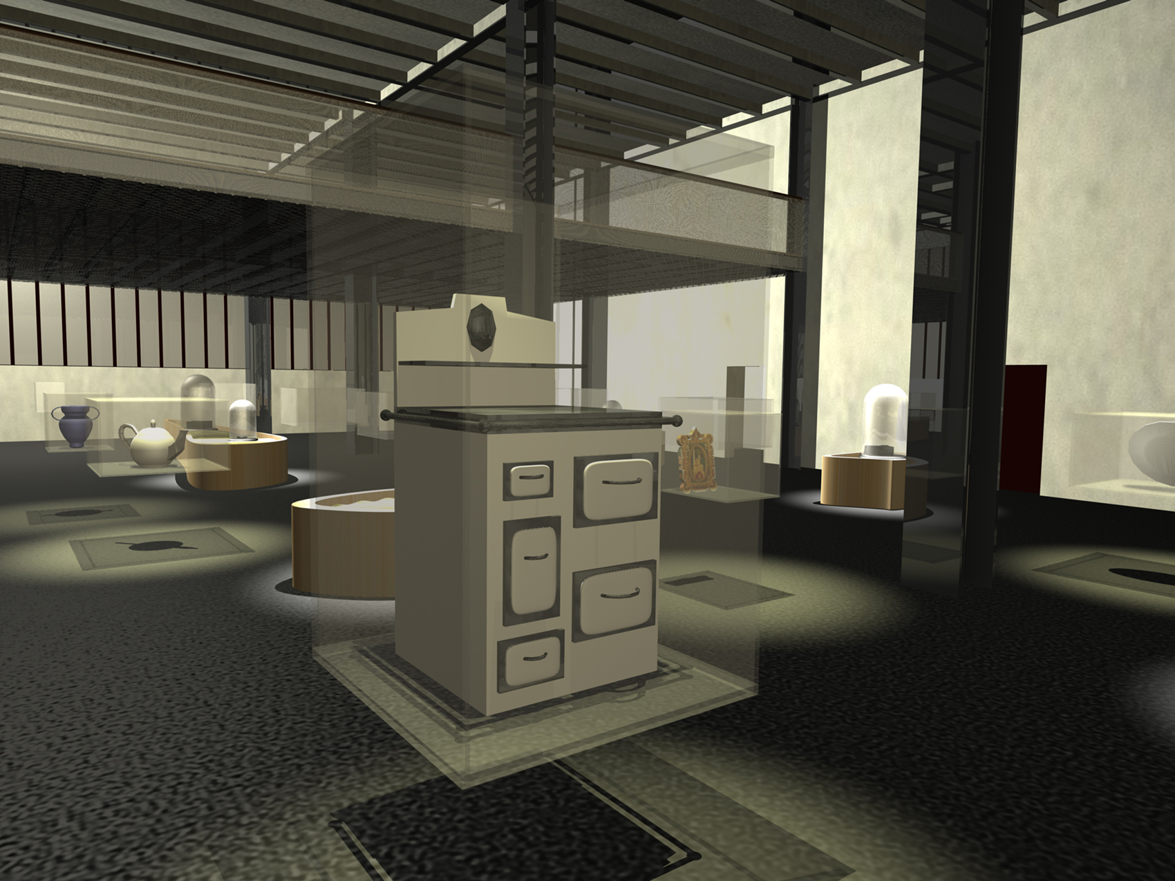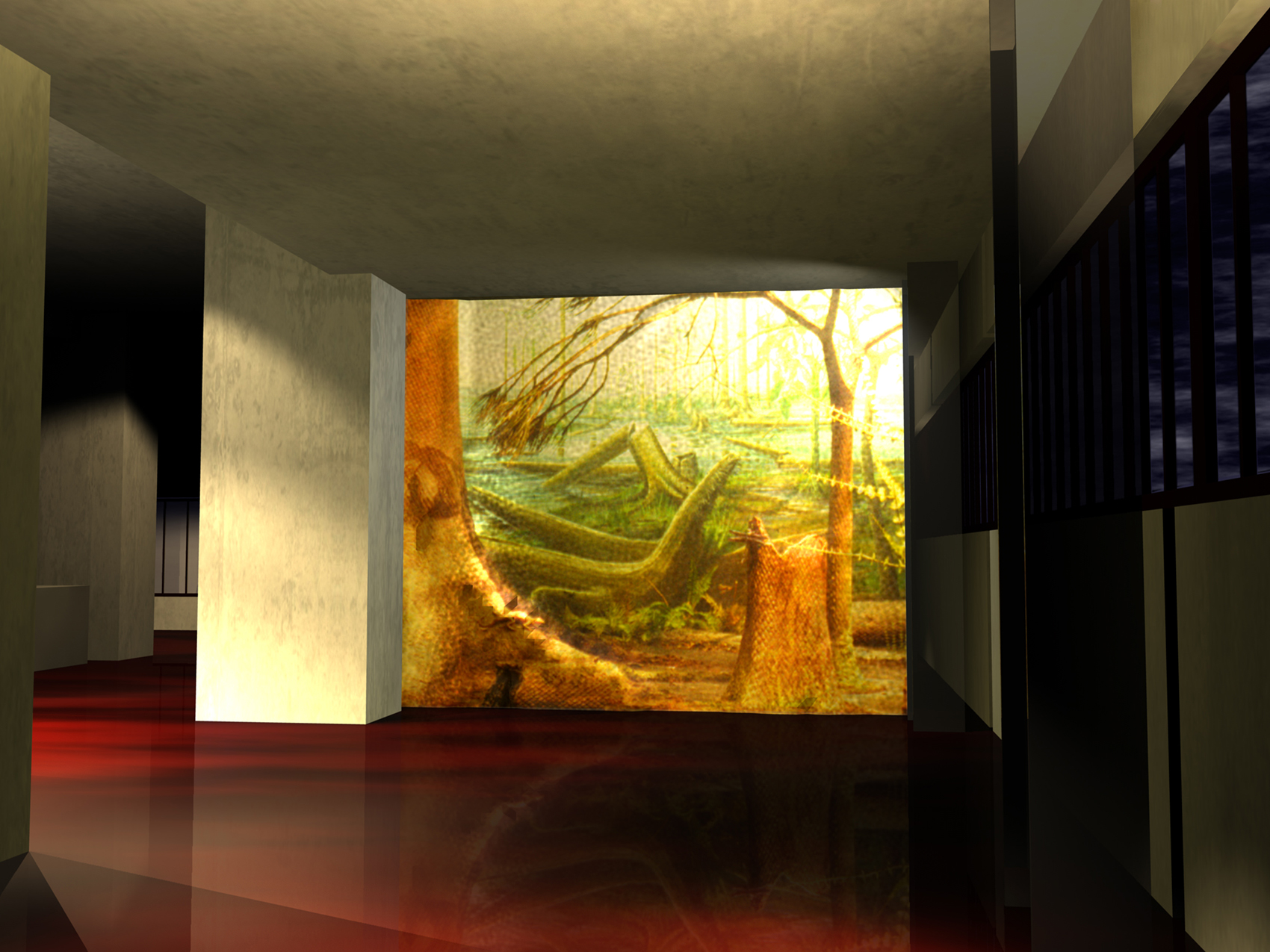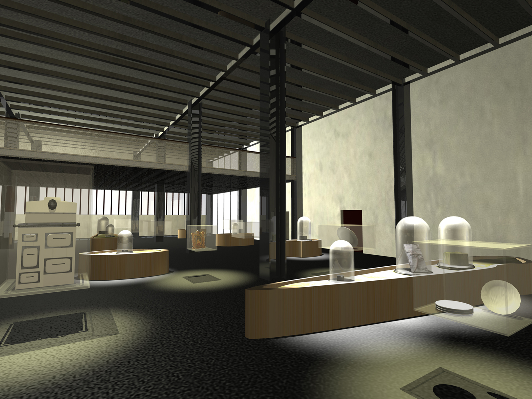 Während des SONNENAUFGANGES liest der Besucher auf den WANDZEITUNGEN über tatsächliche Besonderheiten er Region. Am MORGEN studiert der Besucher historische Karten und Bildstatistiken. Die monumentalen Becherwerke schaffen das Ambiente für eine SCHULE der aufregenden Art. Gegen MITTAG betritt man das MUSÉE SENTIMENTAL und schwelgt in den Erinnerungen an frühere Zeiten. Im tief stehenden Licht des NACHMITTAGES durchschreiten die Besucher die KUNST- UND WUNDERKAMMERN in den alten Kohlebunkern. Der Abend ist zur NACHT geworden und die Besucher beenden den Rundgang durch das Feuer, welches diese Region einst formte.