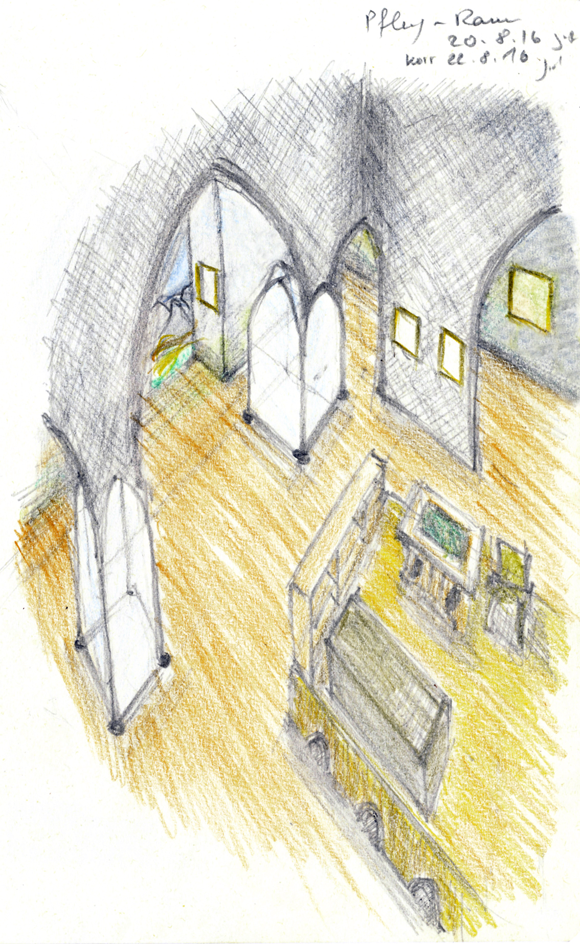 Dabei ist die Skizze unschlagbar. Mit schnellem Strich – abends vielleicht noch etwas ausgemalt – wird eine Idee zu Design oder gar zum Raum, ohne eine Konzeptionssitzung verlassen, oder Hinweise an eine Hintermannschaft am Computer geben zu müssen. Für diese ist die Skizze dann eine wertvolle Unterstützung der Entwurfs- und Ausführungsplanung.
