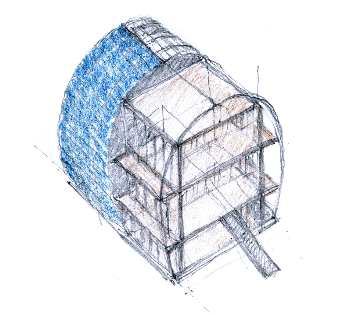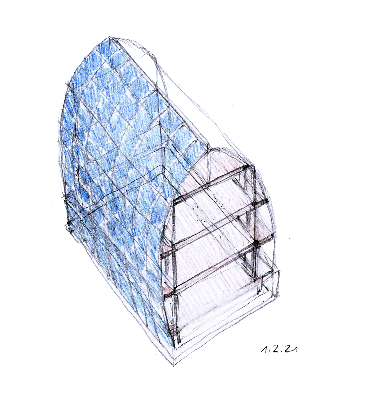 Die ost-westliche Ausrichtung des rechteckigen Grundstücks und die niedrige Umgebungsbebauung gaben der Idee zusätzlichen Sinn. In den letzten Jahren wurde die Entwurfsplanung abgeschlossen und eine Bauvoranfrage beim Landkreis eingereicht. Diese wurde am 16. Dezember 2021 positiv beschieden.