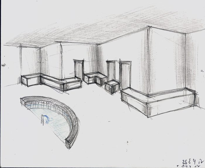 •  Drittens gilt es, die verschiedenen Attraktionen wie Baden, Sauna, Massage und Bewegung räumlich miteinander zu verknüpfen – einerseits um Personal zu sparen, hauptsächlich aber um eine spannende Raumdramaturgie zu entwickeln und dem Publikum dadurch ein umfassendes Erlebnis anzubieten.