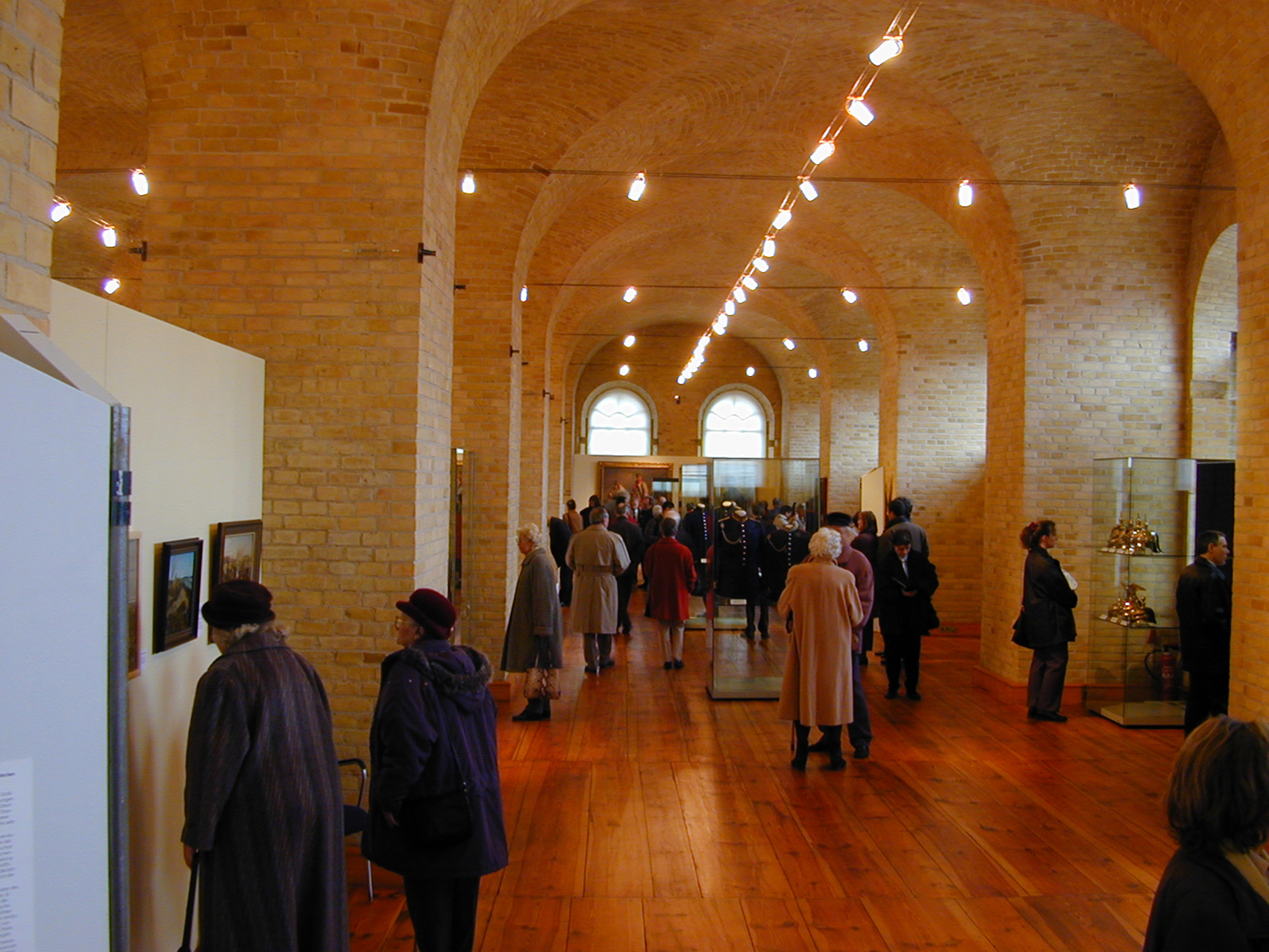 Auf Empfehlung der Museumsleiterin Andrea Theissen beauftragte der Berliner Senat in Person des berühmten Architekten und Bauverwaltungsbeamten Rainer G. Rümler das Büro Steiner, für die denkmalgeschützten Räume eine Lichtanlage mit minimalem Bauaufwand zu entwickeln.Jeweils in der Mitte der Wandabschnitte im Obergeschoss sind Aufhängepunkte für Leuchten mit Seilleiter mit Transformatoren an den Wänden gesetzt. Über diesen Punkten spannten wir durchhängende Trageseile dergestalt, dass das Seilleiterpaar waagrecht hängt. Leuchten für Seilleiterpaar mit entblendendem, lichtverteilendem Glaszylinder können dort am Seilleiterpaar montiert werden, wo sie zur Raumausleuchtung benötigt werden. Durch Reflektorhalogenlampen ist ein guter Ausgleich zwischen Stimmungs- und Nutzlicht möglich. Die wunderbar gemauerten Gewölbe bleiben unberührt und können ihre Wirkung vollständig entfalten.Eine veränderte Bauart, allerdings mit Ausleger, kam im Erdgeschoss zur Anwendung: Die Leuchte mit Drehrad und Entblendungstubus sitzt vorn an einem Kragarm aus poliertem Aluminium. Über den Hauptbalken, zwischen den Sekundärträgern sind die Kragarme auf dem Transformatorengehäuse befestigt.