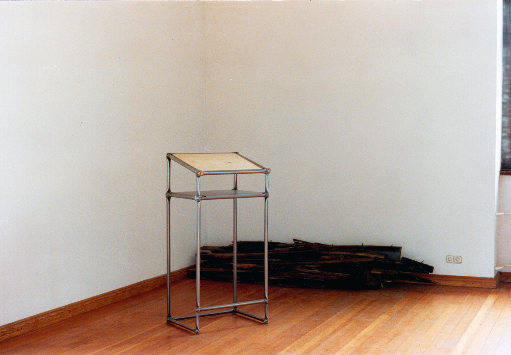 Stehpulte aus System 180 sind in vielen Varianten seit den frühen 1980er Jahren entworfen worden. Das abgebildete Objekt, das auch 1994 in der Ausstellung »Sitzlast – Stehlust« gezeigt wurde, war das meist produzierte. Es zeichnet sich durch seine Reduziertheit und Funktionalität aus.