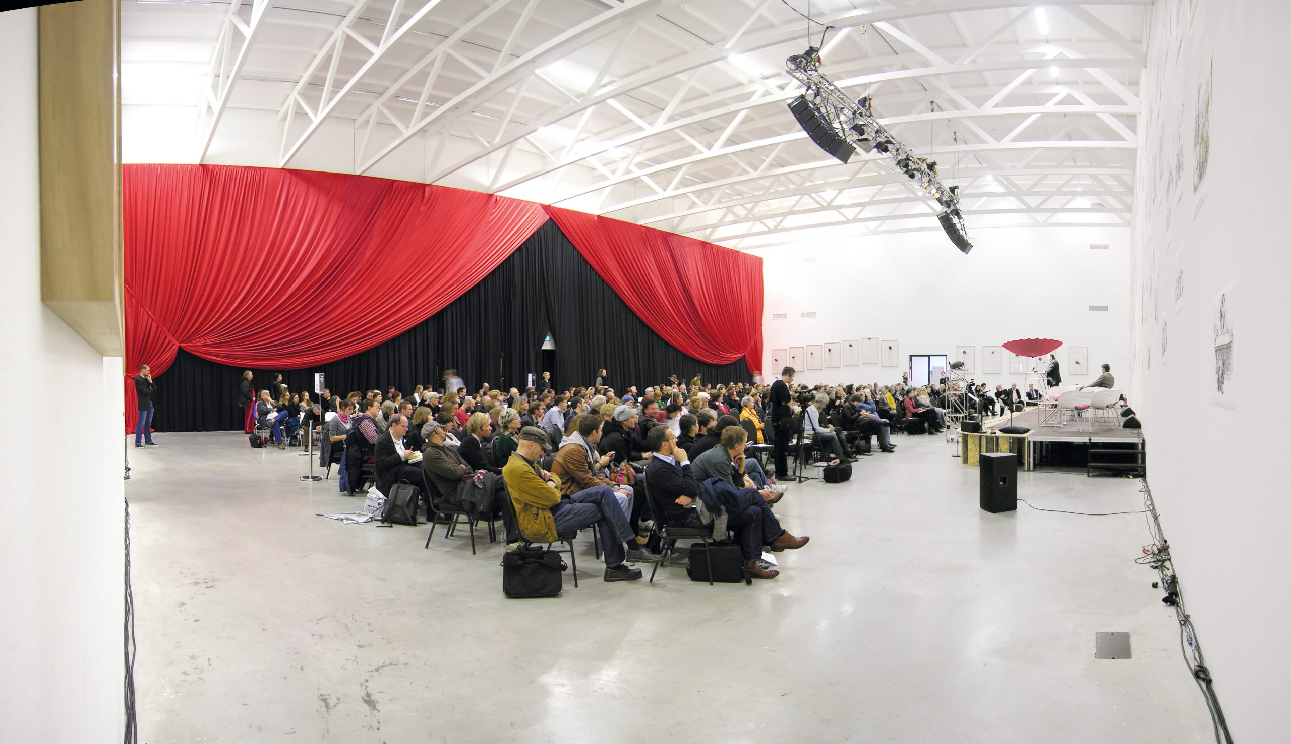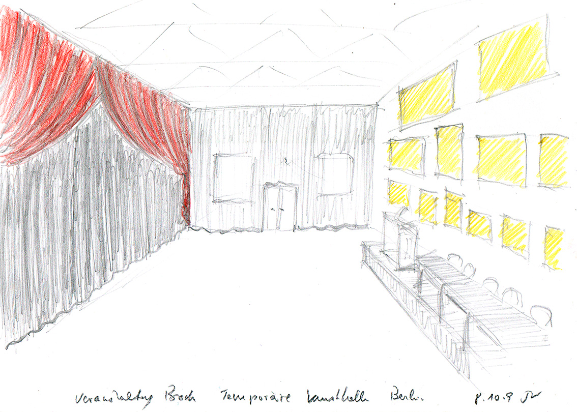 Am 24. November 2009 fand in der »Temporären Kunsthalle Berlin« ein zwölfstündiges Symposium unter dem Oberbegriff »Musealisierung als Zivilisationsstrategie« statt. In Zusammenarbeit mit dem emeritierten Ästhetikprofessor Dr. h.c. Bazon Brock, entwickelten wir die das Thema befördernde mise-en-scène der Veranstaltung, welcher es gelang, die Vorträge der Referenten zusammenzufassen. Zur temporären Bespielung der Halle nutzten wir neben schwer entflammbaren Stoffen, einem zusätzlichen Bühnenanbau und 55 faksimilierten Zeichnungen des französischen Karikaturisten Grandville, Möbelelemente aus System 180. Neben den qualifizierten Vorträgen der Referenten und der beeindruckenden Inszenierung, erhielten die Rezipienten der stark frequentierten Veranstaltung ein Publikumshonorar von 25 Euro.