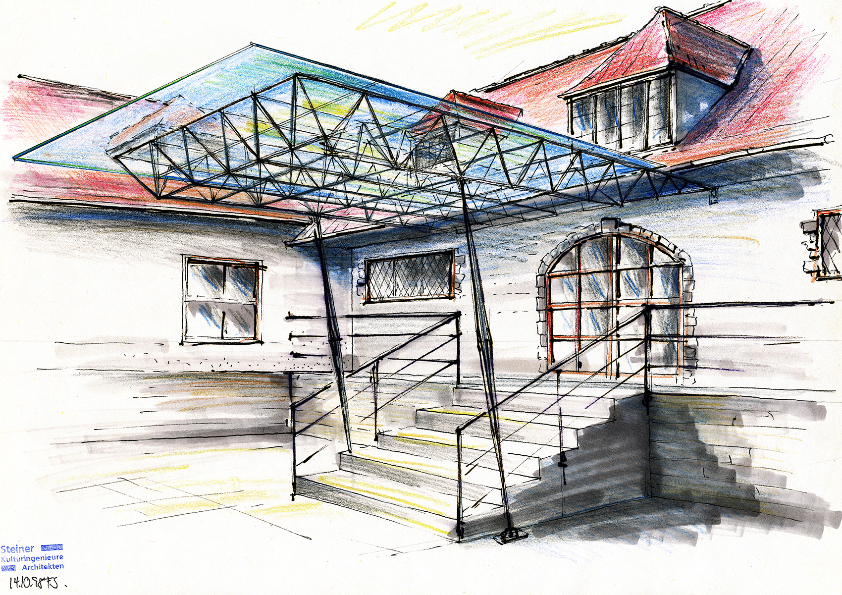 2. Gestaltung der Freitreppe vor der Rampe
