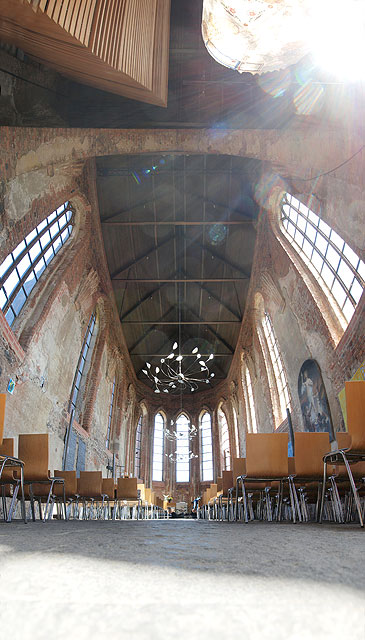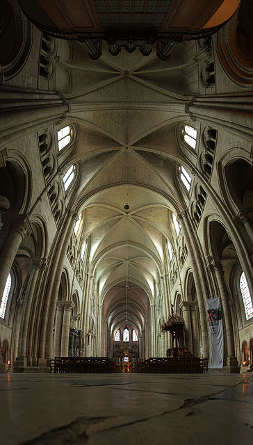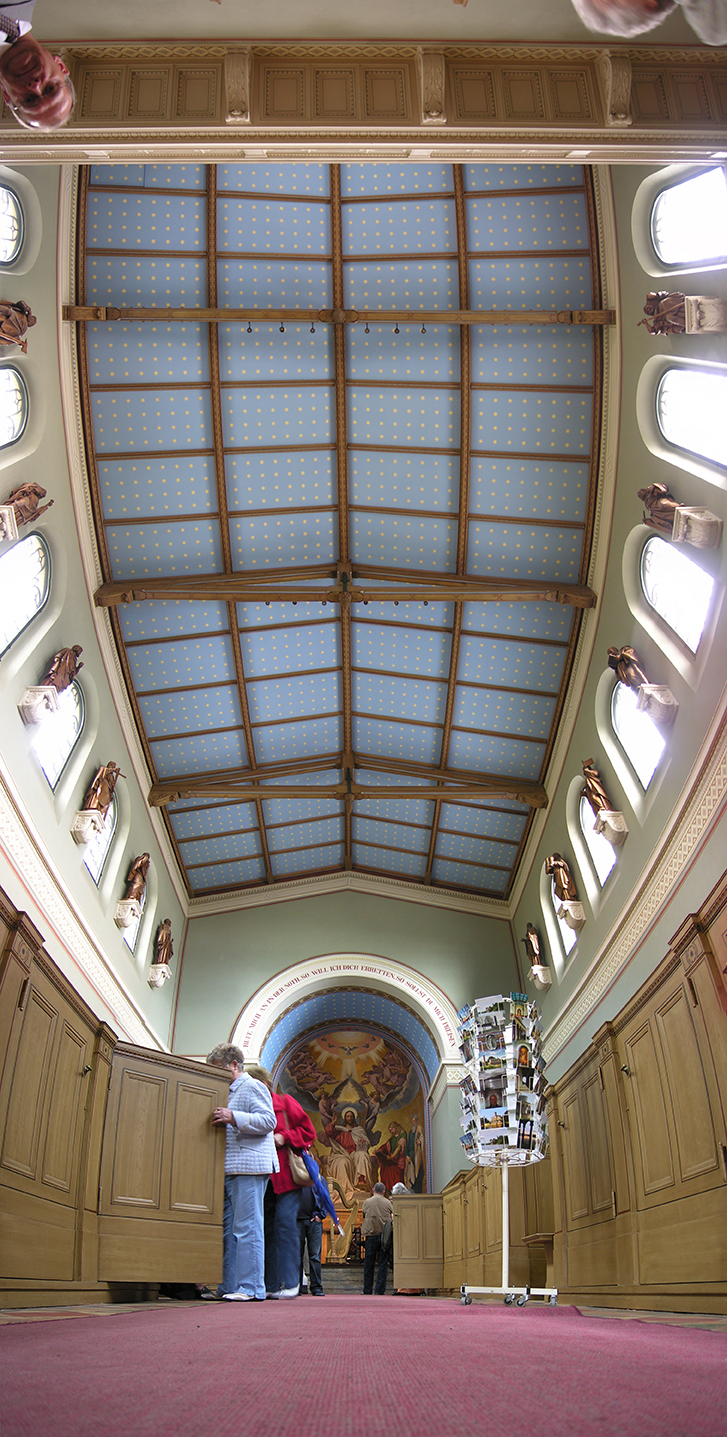 Das von Jürg Steiner 2006 entwickelte Vertikalpanorama findet gerade bei sakralen Räumen sein umfassendstes Prüffeld. Säulen und Pfeiler verbinden sich in der Kirchenbaukunst mit der Decke in einer Weise, die gerade im Vertikalpanorama auf den analytischen Blick in der zweiten Dimension destilliert wird. Dabei entstehen Bilder, die im Jahr 2010 Basis der Festschrift ›Himmel und Erde‹ bildeteten und dabei zum ersten Mal im grösseren Umfang ausgestellt wurden. Hier ist eine Auswahl aus Sachsen-Anhalt (Merseburger Dom), Brandenburg (Sacrow, Fürstenberg an der Havel und Müncheberg), Niedersachsen (Könisgslutter), Westfalen (Hoetmar), Mallorca (Lluc), Paris und Burgund (Sens) zu finden.