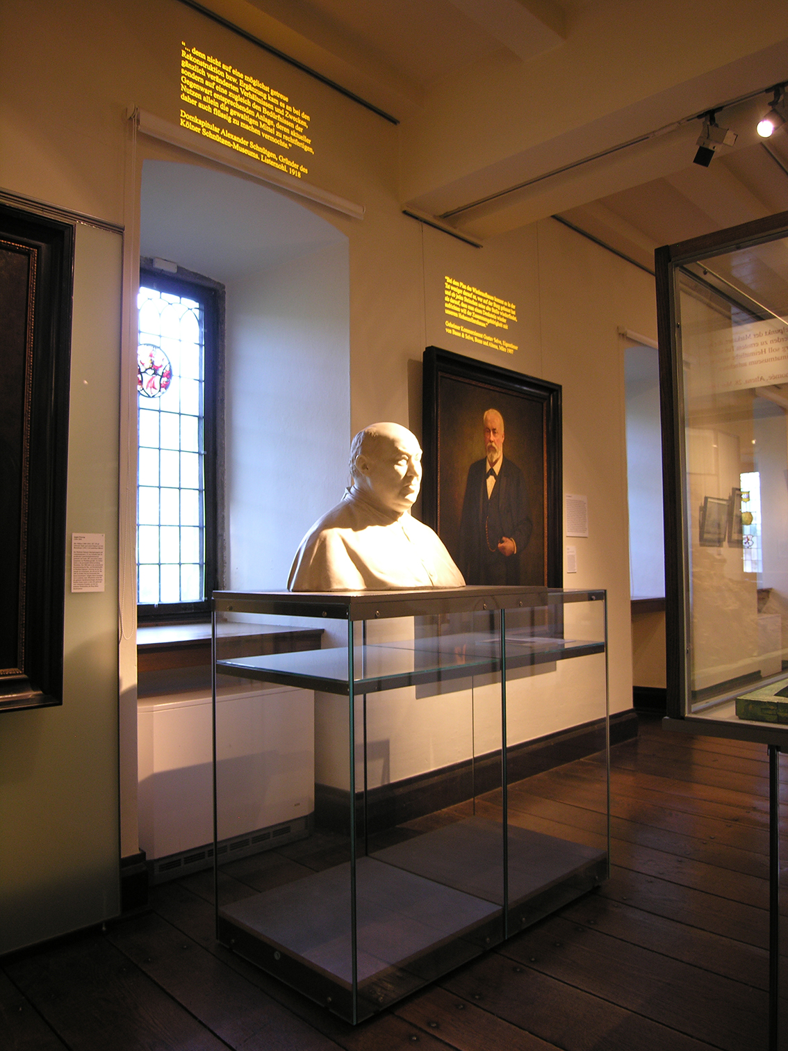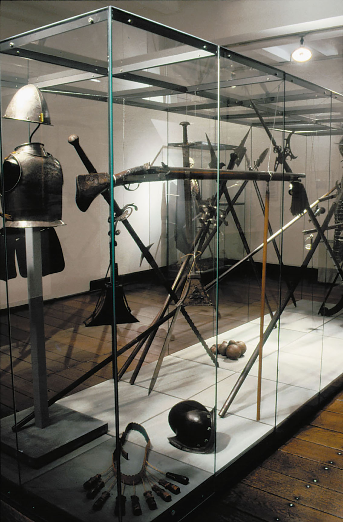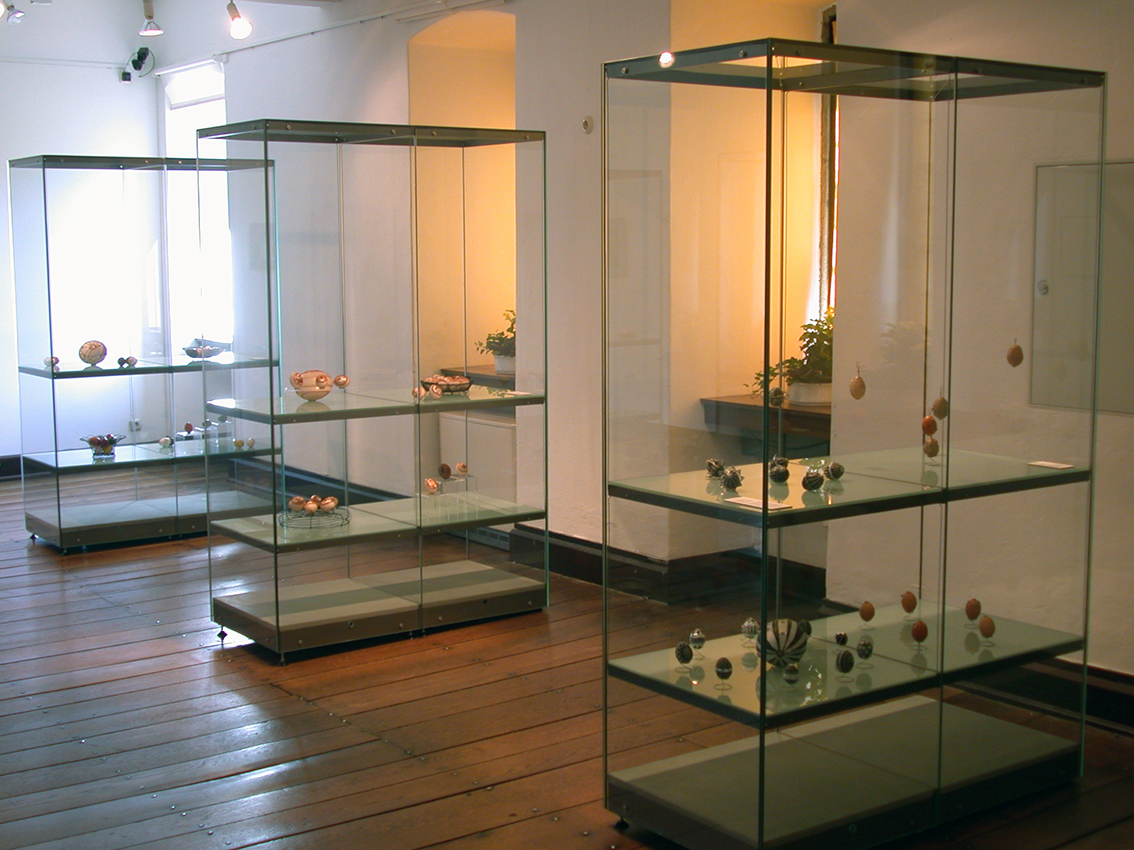 Das Vitrinensystem der Ausstellung Feuer und Flamme – 200 Jahre Ruhrgebiet hatte sich so weit bewährt, dass es gemeinsam mit dem Museumsleiter, dem Chefrestaurator des Westfälischen Museumsamtes, This Karstens, und dem Haustechniker Andreas Gerstendorf für die Burg weiterentwickelt wurde: 10 mm starke Glasscheiben sind teilweise nicht nur geschraubt, die letzte kann mit einem Steckschloss versehen und nicht ohne passenden Schlüssel entfernt werden. Die Kanten sind mit Dichtungsband hinterlegt, um eine hohe Staubdichtigkeit zu erzielen. Die Vitrinen lassen sich zu großen stabilen Einheiten kombinieren. Als Bodenplatte wählte man passend zum Baumaterial der Burg polierte Grauwacke. Das System ist seit Ende der 1990er Jahre ununterbrochen im Betrieb und sieht immer noch wie neu aus. Es wurden sowohl Hoch- als auch Sockelvitrinen hergestellt, gut zu sehen auf dem drittletzten Bild aus der Sonderausstellung ›Duell‹, die 2009 auf der Burg Altena gezeigt wurde. Ebenfalls wurde dort auch mit einer Marmorbüste Alexander Schnütgens die Stabilität des Systems unter Beweis gestellt (letztes Bild).