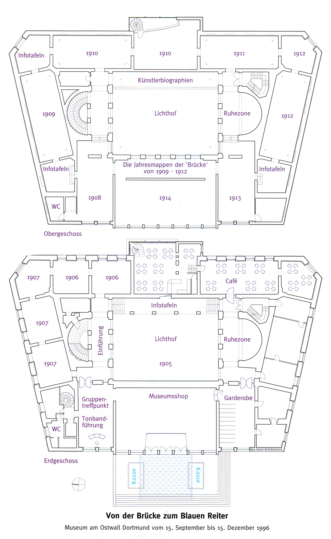 Die Raum- und Ausstellungsgestaltung entfaltete eine elegante Grundharmonie in dem 1990 umgebauten Museum. Da die renovierten Oberlichter durch die äussere Spezialverglasung und die inneren Verbundsicherheitsgläser eine leicht grünliche Grundlichtfarbe erzeugten, wurden für die Oberlichträume zusätzliche Leuchten für Hochvolthalogenlampen entwickelt. Zur Raummitte entblendet, spendeten diese Leuchten ein warmes, die Farbwiedergabe unterstützendes Licht.