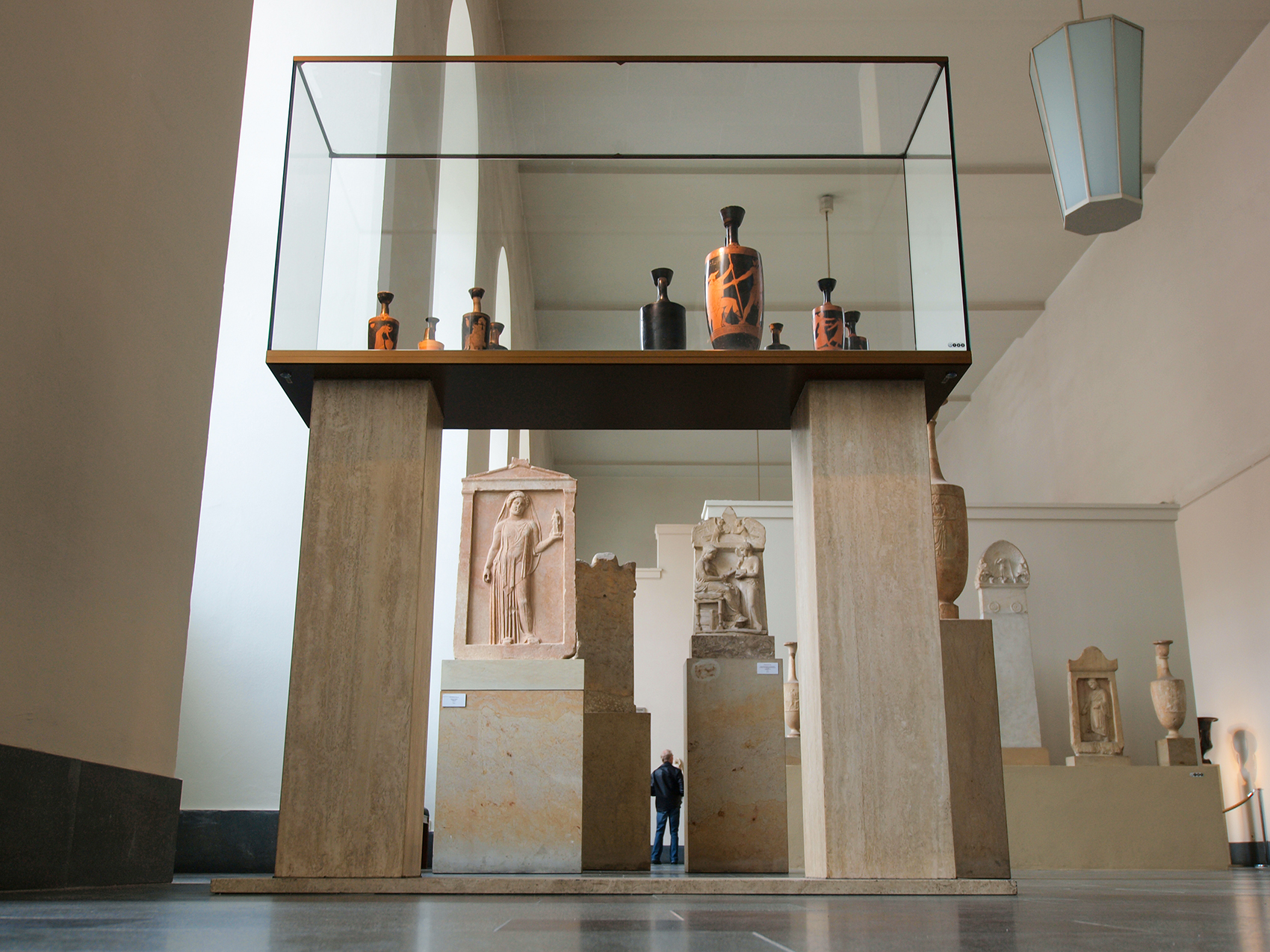 1995 entwarf das Büro Steiner Sockel und Vitrinen für die Ausstellung Von allen Seiten schön – Bronzen der Renaissance und des Barock im Alten Museum Berlin. Dem Kurator Volker Krahn lag daran, hochwertige Sockel für die einmaligen Bronzen zu bekommen und schlug vor, diese in Pietrasanta in Italien fertigen zu lassen. Ein Besuch dort vermittelte Jürg Steiner die Gewissheit, dass Sockel aus Travertin die Würde der Objekte erhöhen und schonend mit dem Budget umzugehen halfen. Konsequent wurden dann Vitrinen für diese Sockel entwickelt – sicher und formschön in bronziertertem Messing. Die Sockel und Vitrinen waren so gut, dass sie nachhaltig Eingang in die Dauerausstellung im Berliner Pergamonmuseum fanden.