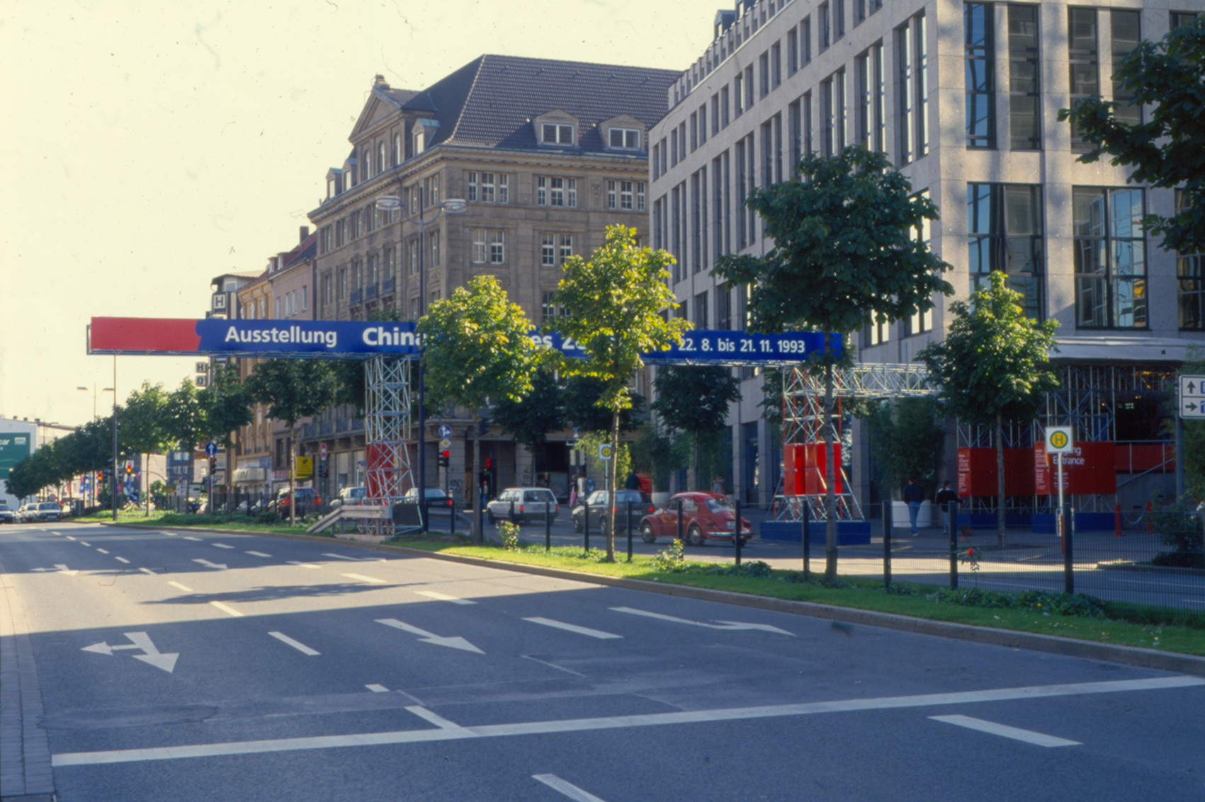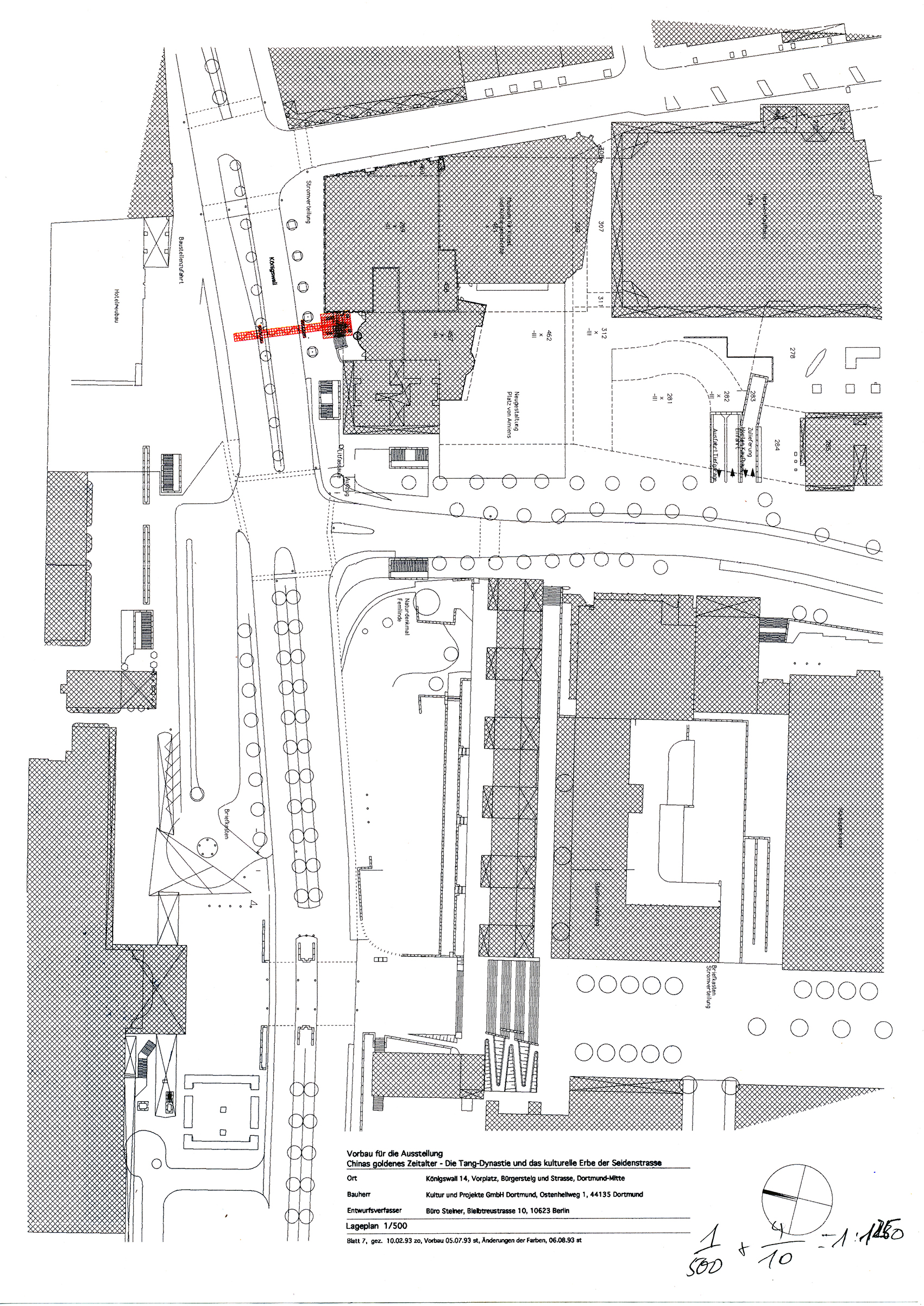Für die zweite große China-Ausstellung in Dortmund mit dem Titel Chinas Goldenes Zeitalter – Die Tang-Dynastie (618–907 n. Chr.) und das kulturelle Erbe der Seidenstraße mit Objekten aus der Partnerstadt Xian galt es, im Stadtbild präsent zu sein. Ein von uns entworfener Vorbau reichte über den vierspurigen viel befahrenen Königswall, an dem auch die von uns eingerichtete Museumserweiterung steht.
