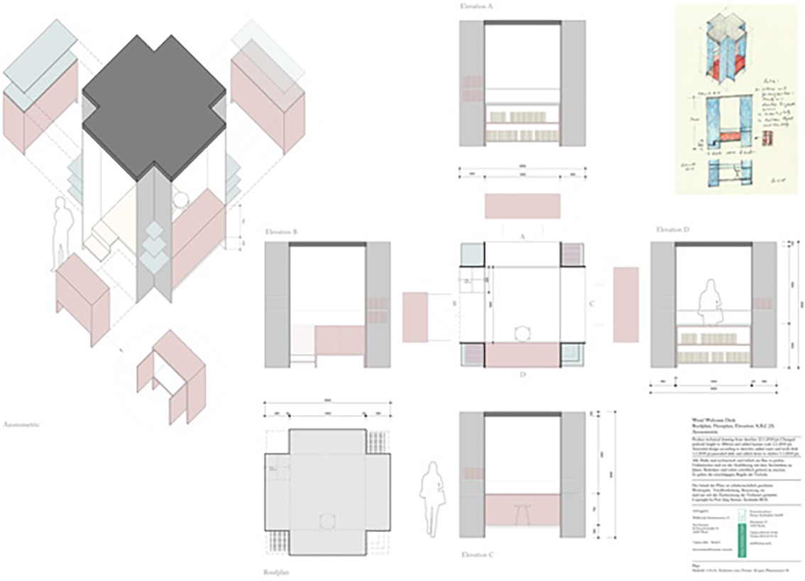 Nach der gelungenen im Jahr 2009 fertiggestellten Dauerausstellung Dom-Zeiten – 16. bis 20. Jahrhundert – eine Bildfolge im Dom zu Wesel beauftragte uns 2017 der Willibrordi-Dombauverein e.V. mit dem Entwurf eines ›Welcome Desk‹.